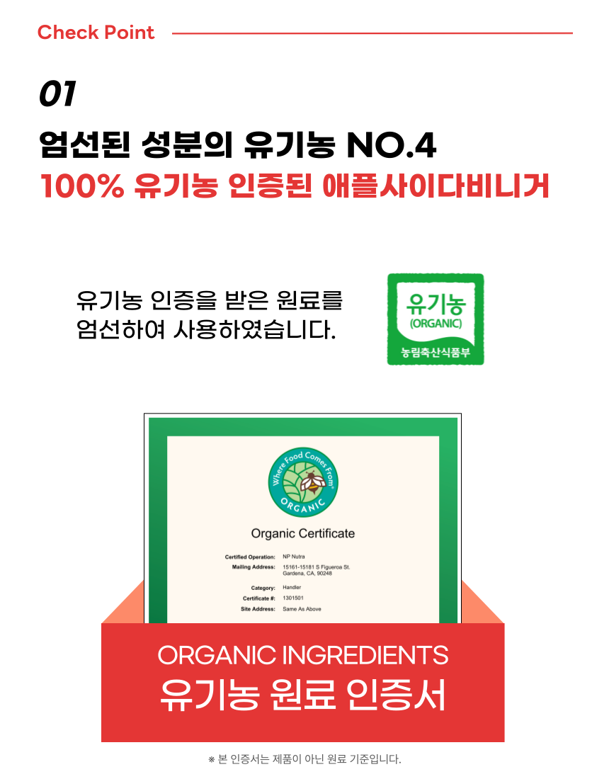 ✔ 정제수 없이 온전히 담은 애플사이다비니거 100%